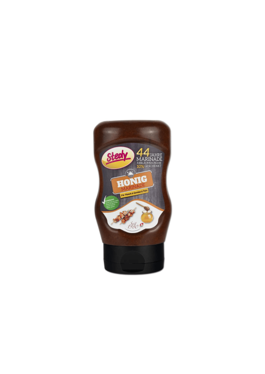 Rapsöl, Wasser, Kochsalz (unjodiert), Paprika, Traubenzucker, Weisswein, Senf, Bienenhonig 33 %, Gewürze und Kräuter