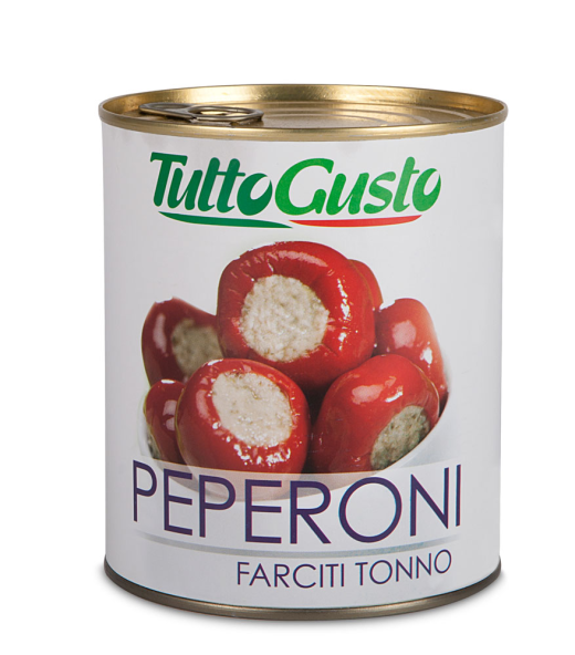 65 % Paprika mit Thunfischpastete (63 % Paprika, 33 % Thunfisch, 2 % Sardellen, 1 % Kapern, 1 % Petersilie), Sonnenblumenöl, Kochsalz, Säureregulator (E 260, E 270)