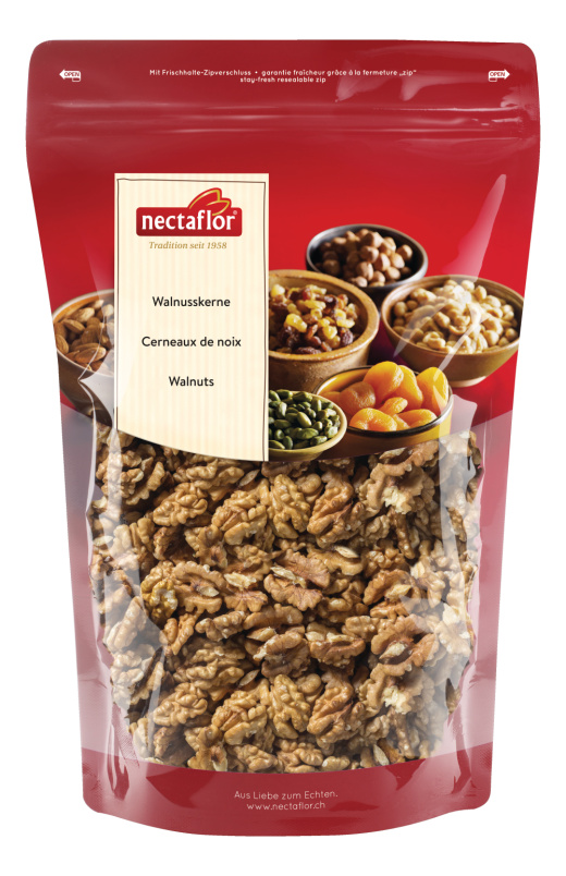 Geniessen Sie Walnusskerne in Spitzenqualität: vorsichtig von Hand aufgeklopfte, schön grosse Hälften mit ausgeprägtem Nussgeschmack